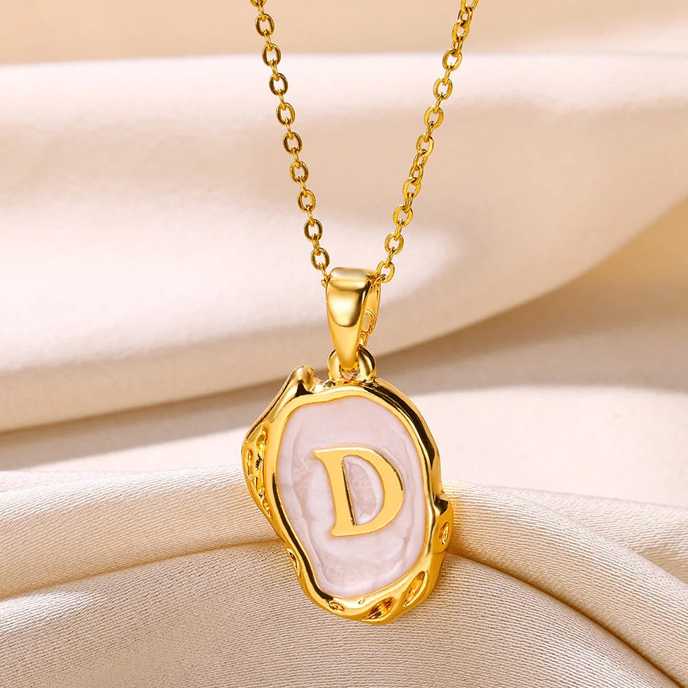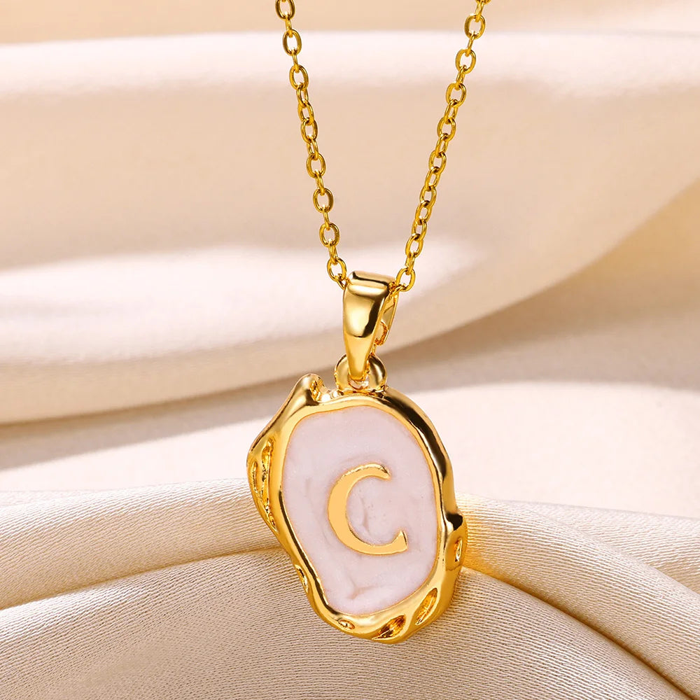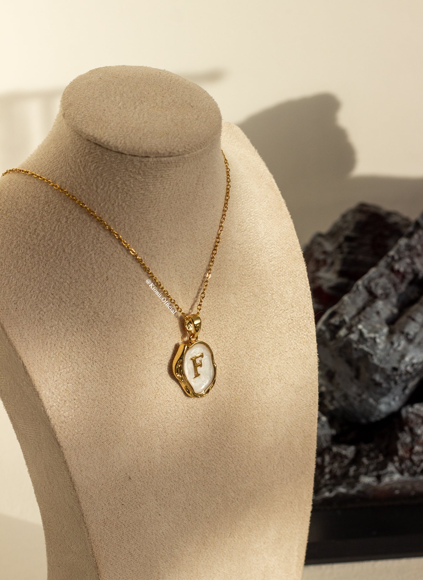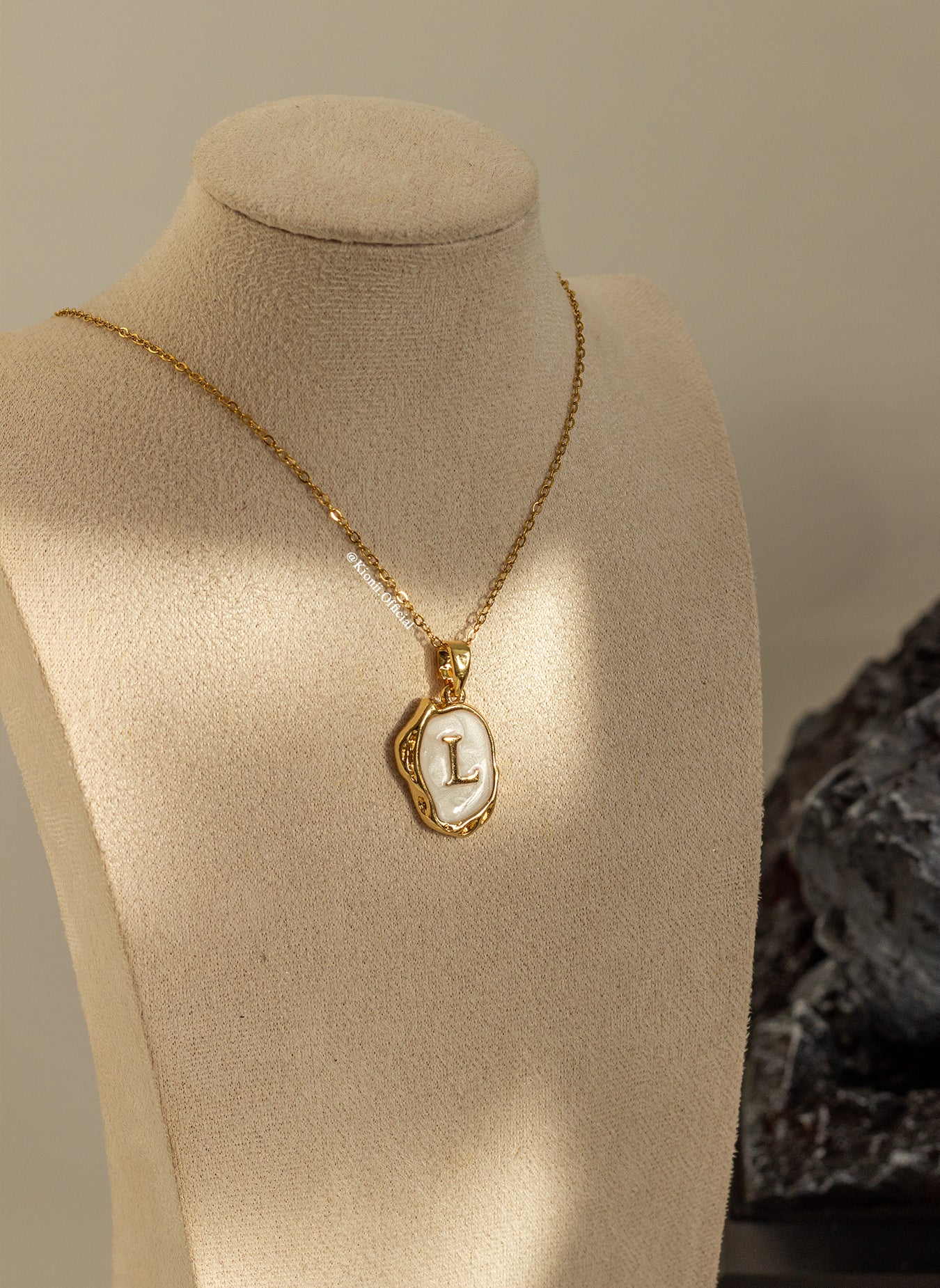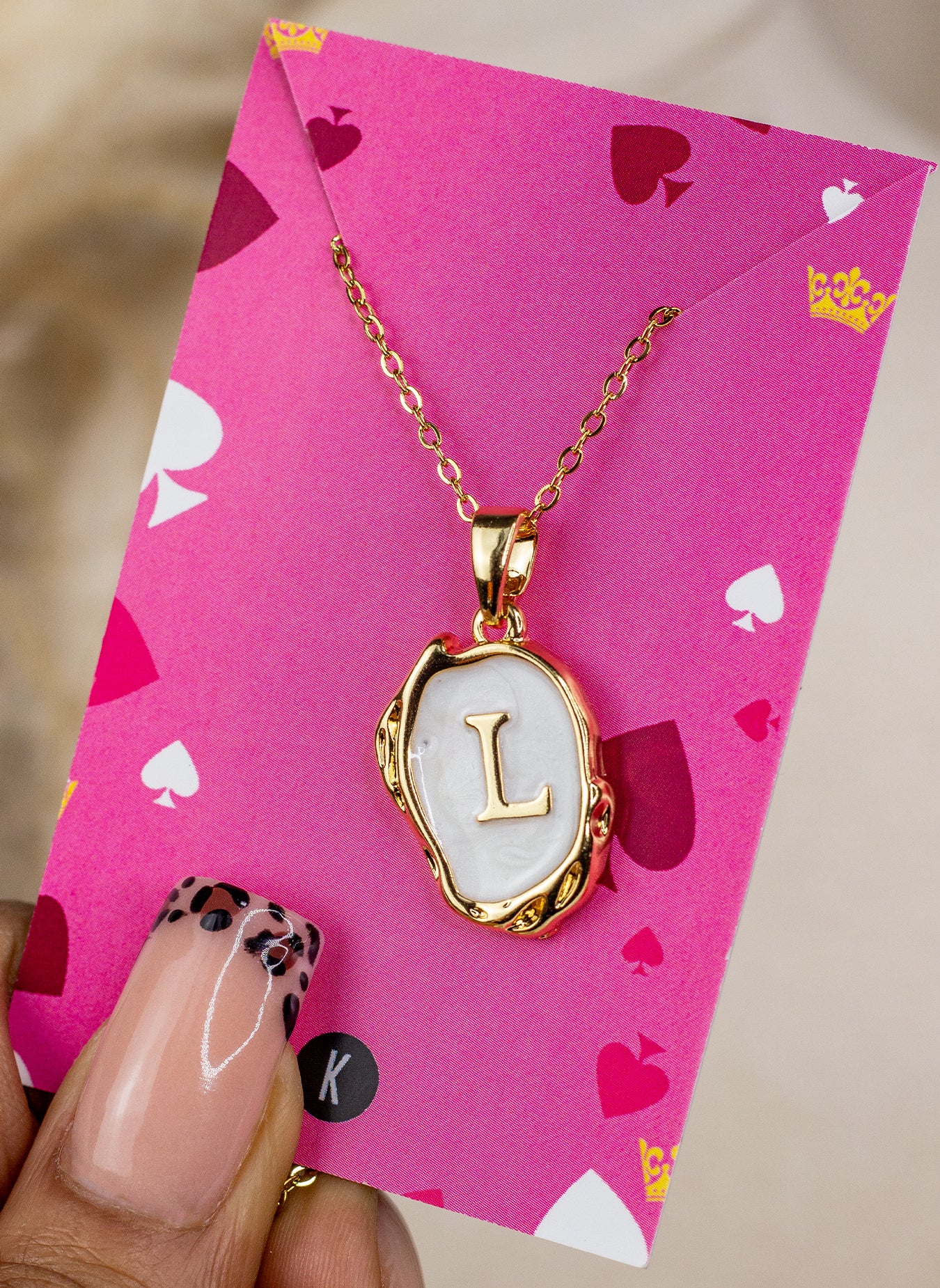 The Cali Initial Necklace is a chic and personal piece that adds a touch of elegance to any look. Featuring a delicate gold chain with a striking white initial pendant, this necklace allows you to wear your identity in style. 💛⚪