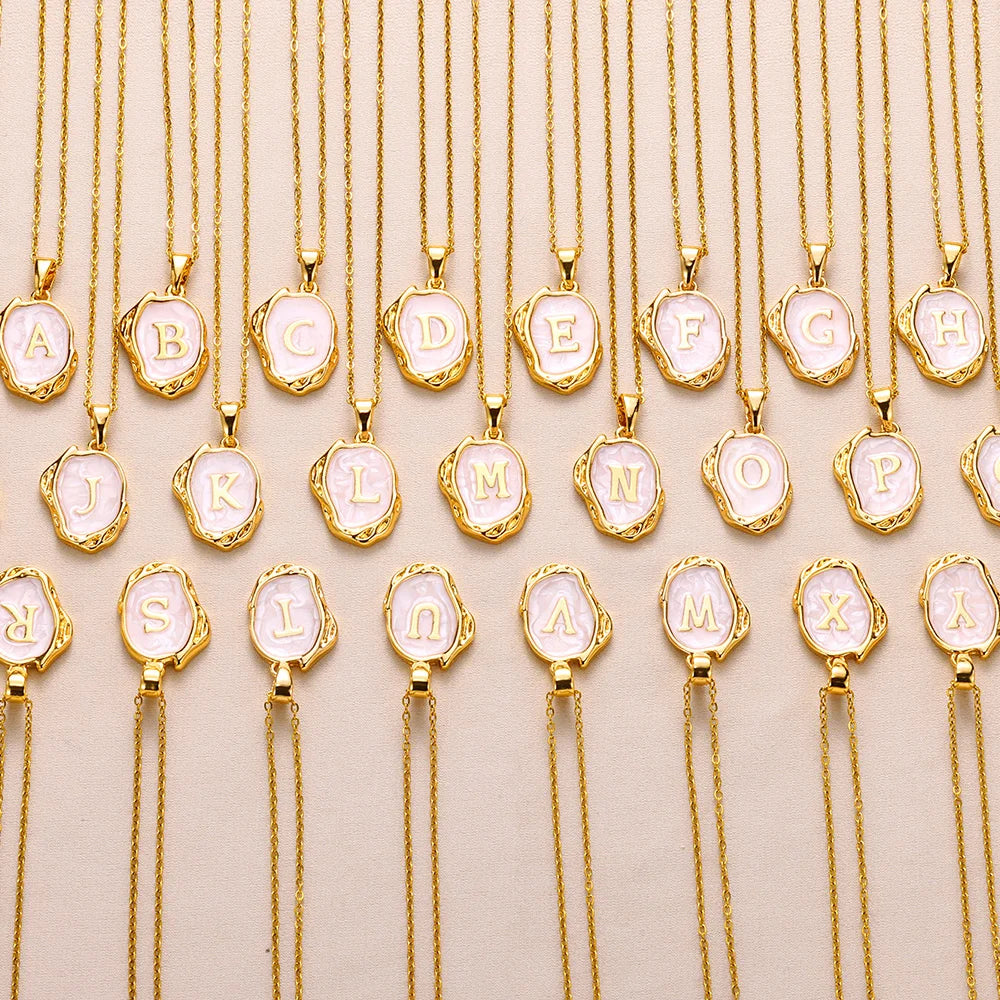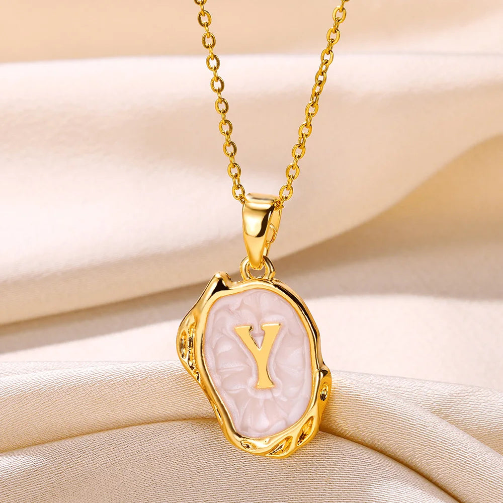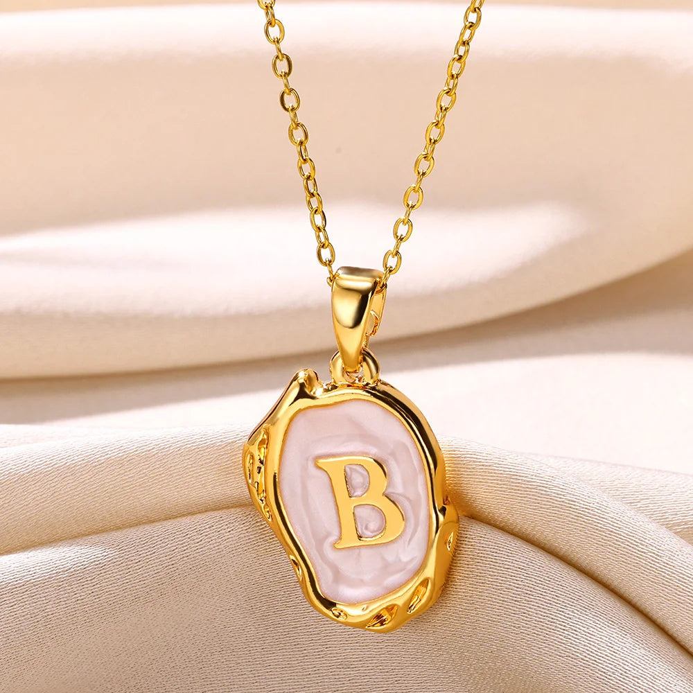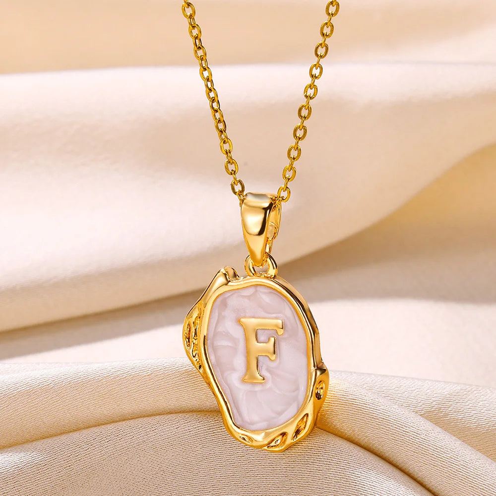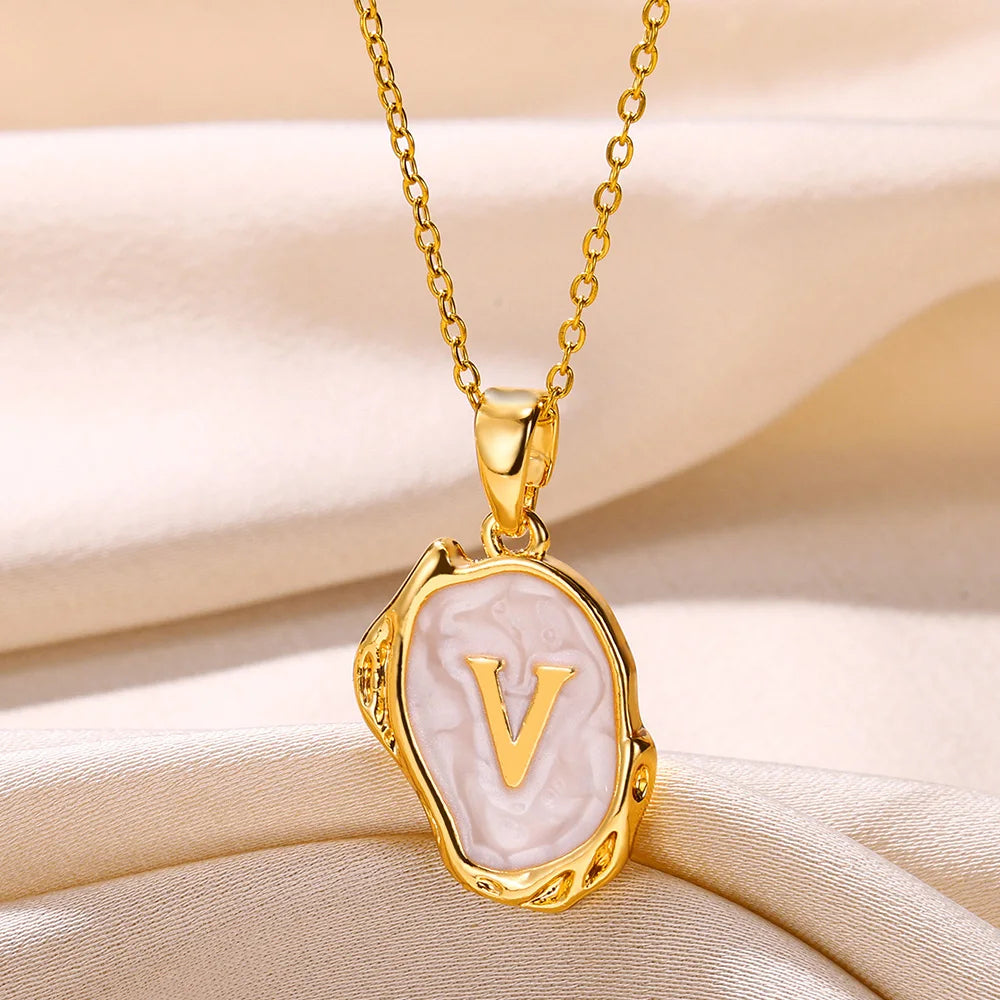 The Cali Initial Necklace is a chic and personal piece that adds a touch of elegance to any look. Featuring a delicate gold chain with a striking white initial pendant, this necklace allows you to wear your identity in style. 💛⚪