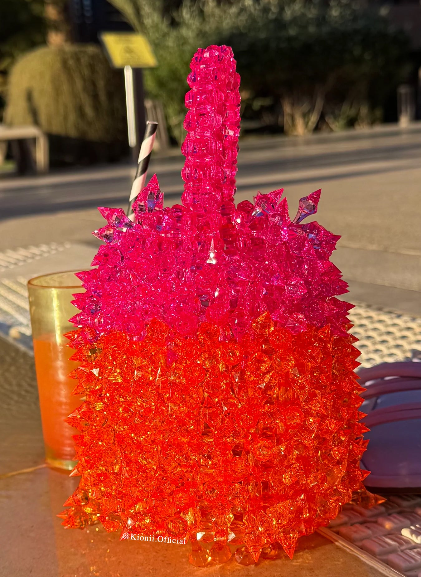 Turn heads with the Grapefruit Punch Beaded Bag, a vibrant statement piece that radiates energy and confidence. Handcrafted with dazzling coral-orange crystal beads ✨, this bag captures the juicy essence of a summer cocktail—but with a fierce twist! The bold spikes add an unexpected edge, making it the ultimate accessory for those who dare to stand out.
