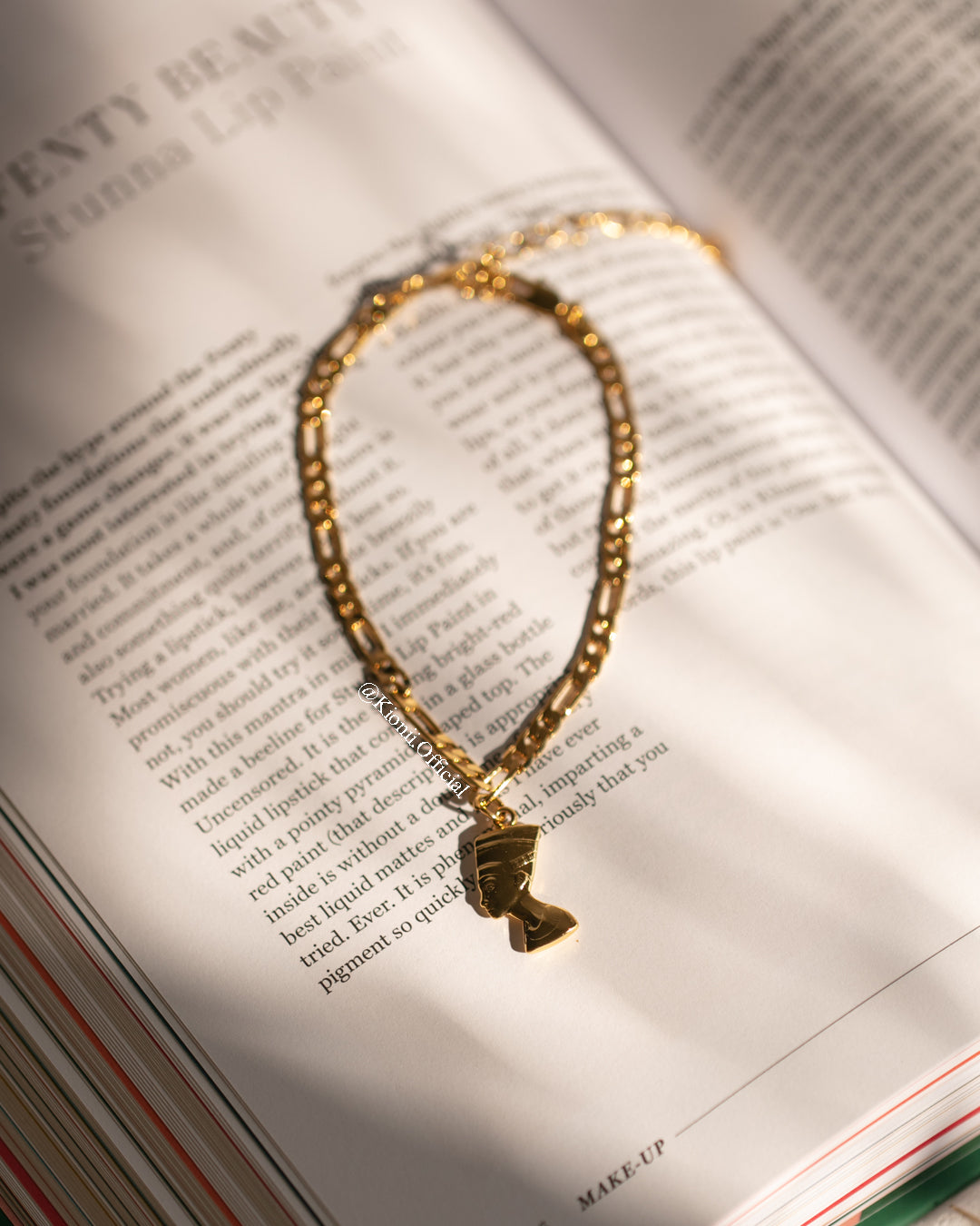 This anklet is a delicate and beautiful accessory for any outfit. It features the beautiful Egyptian Queen. Comes with a beautiful adjustable clasp to fit any size ankle.