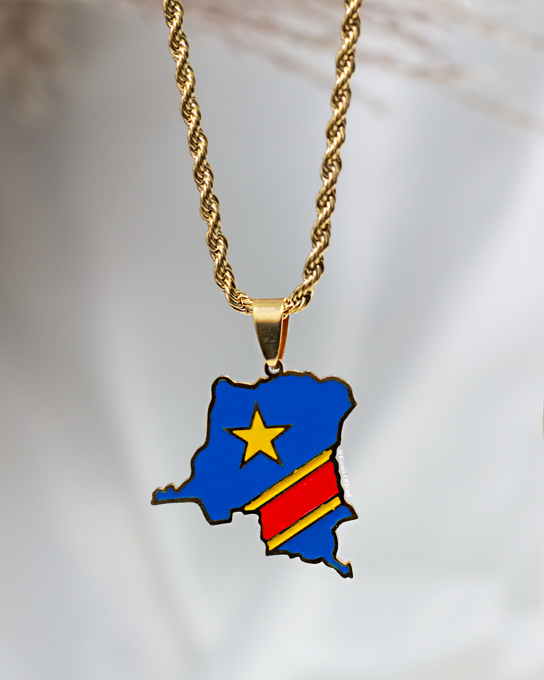 The Congo in colour Necklace, bold statement necklace showing the flag colours of the island - is accompanied with our new rope chain.