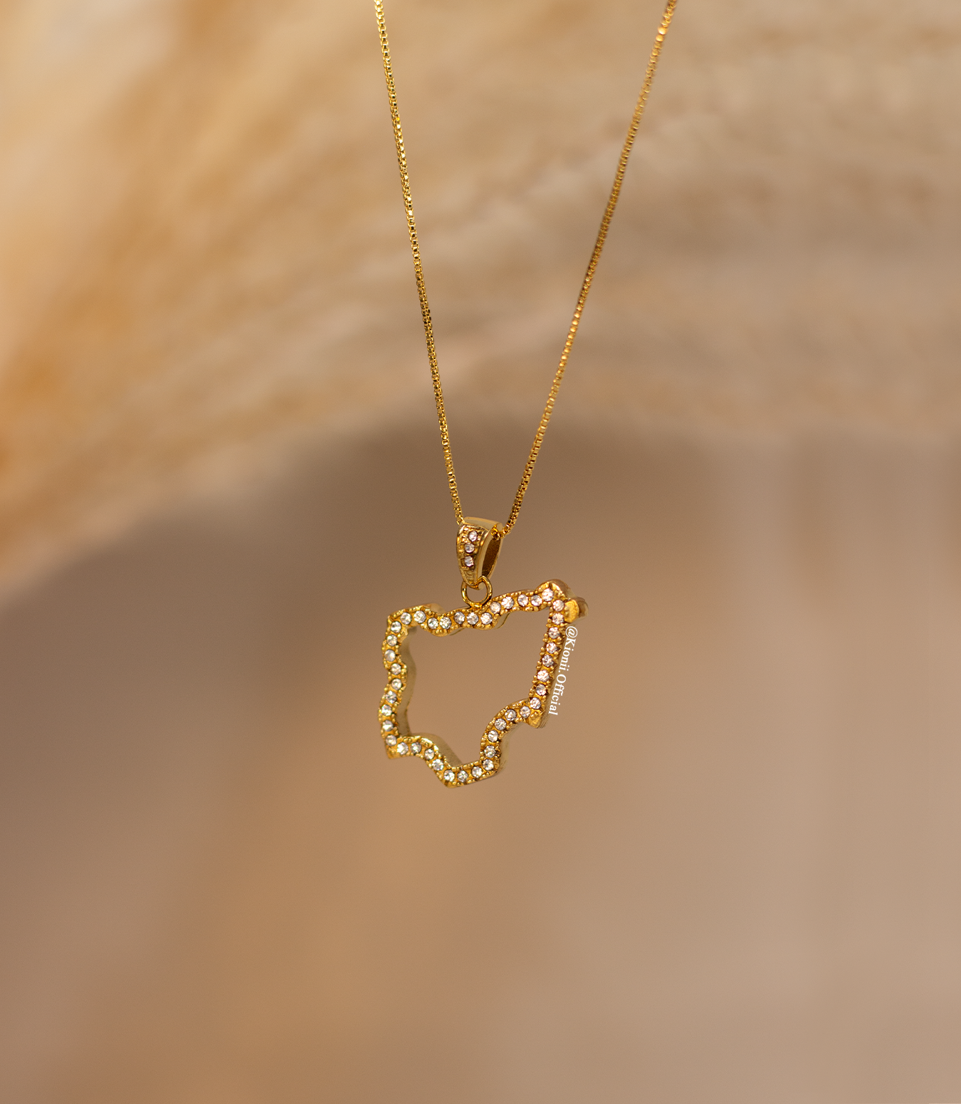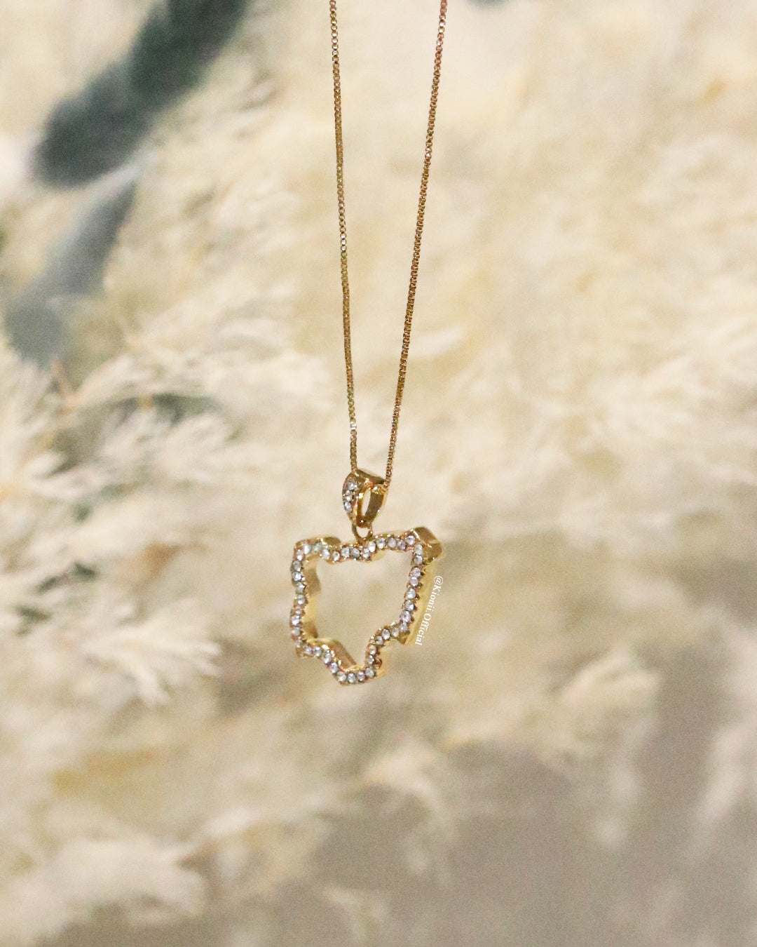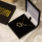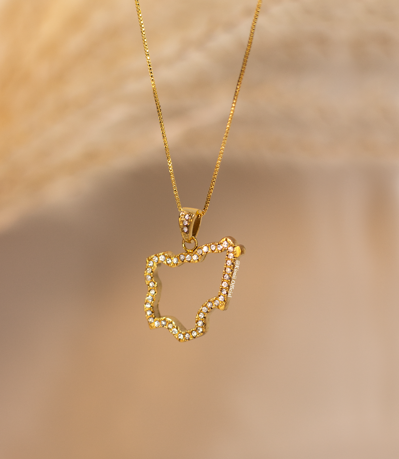 This beautiful necklace dangles from a double gold-plated box chain, which allows the pendant to stand out and gives an elegant look.