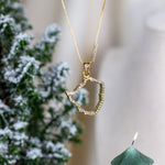 This beautiful necklace dangles from a double gold-plated box chain, which allows the pendant to stand out and gives an elegant look.
