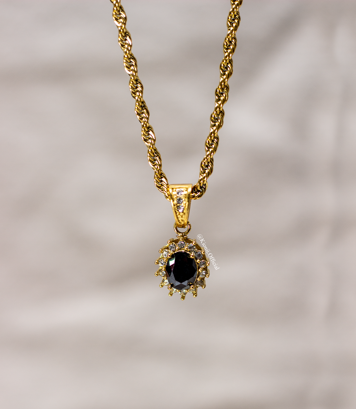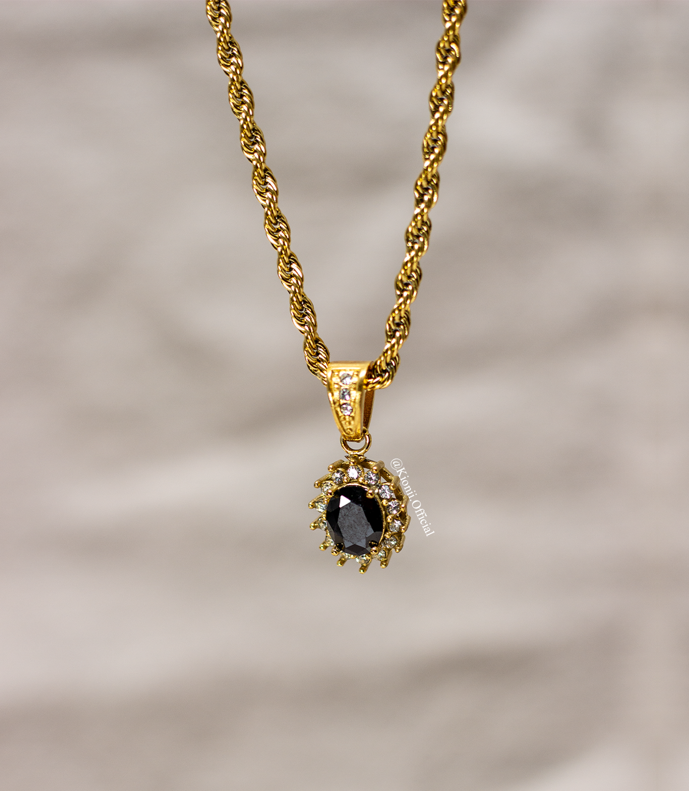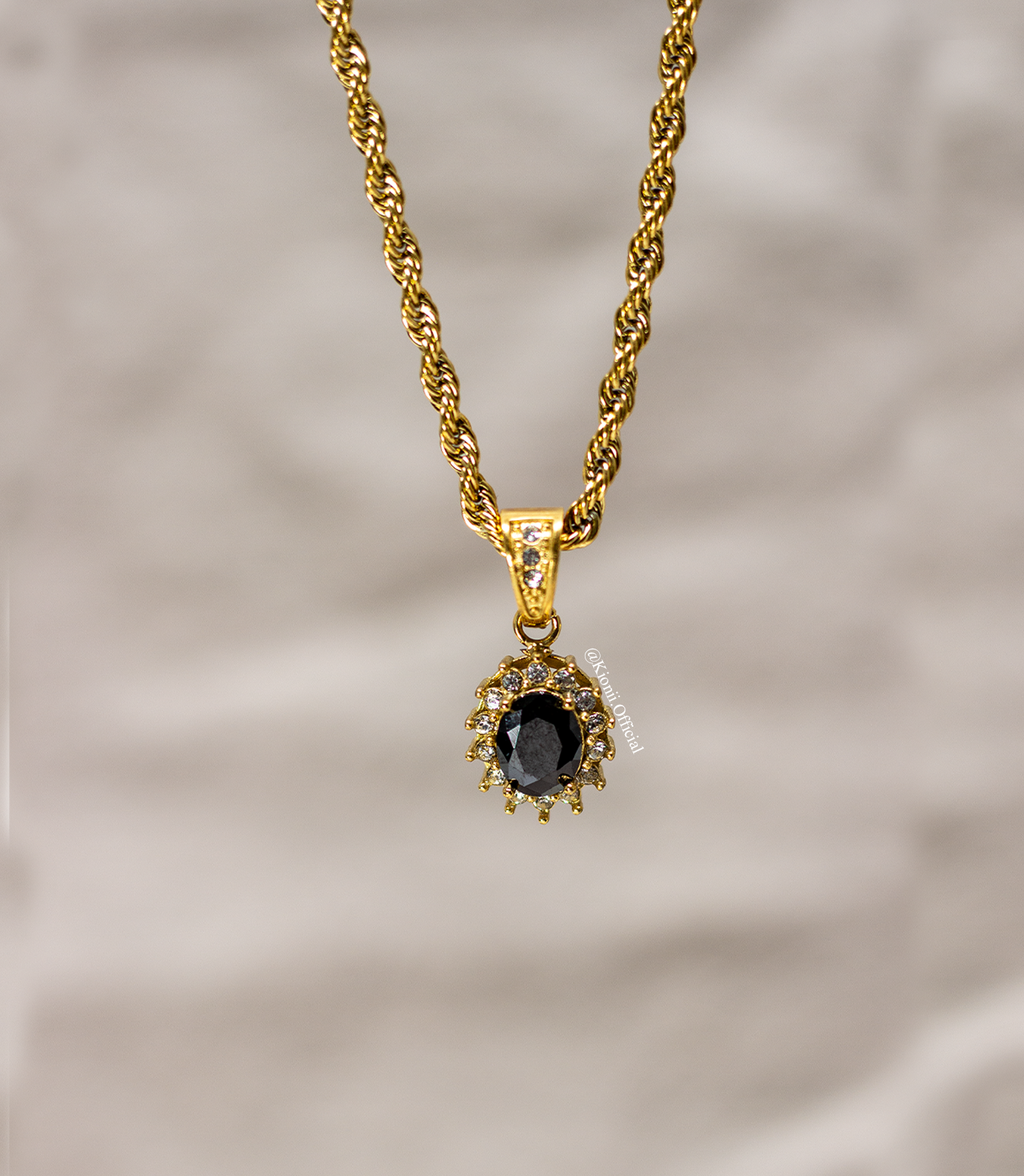 Black Gemstone Pendant - Gold