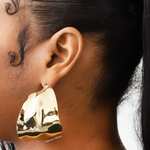 Designed to captivate and command attention, these 18k gold-plated earrings effortlessly blend classic charm with a contemporary edge. Hypoallergenic and perfect for any occasion, their generous size and distinctive C-shaped design add a touch of glamour and trendsetting style to your outfit.