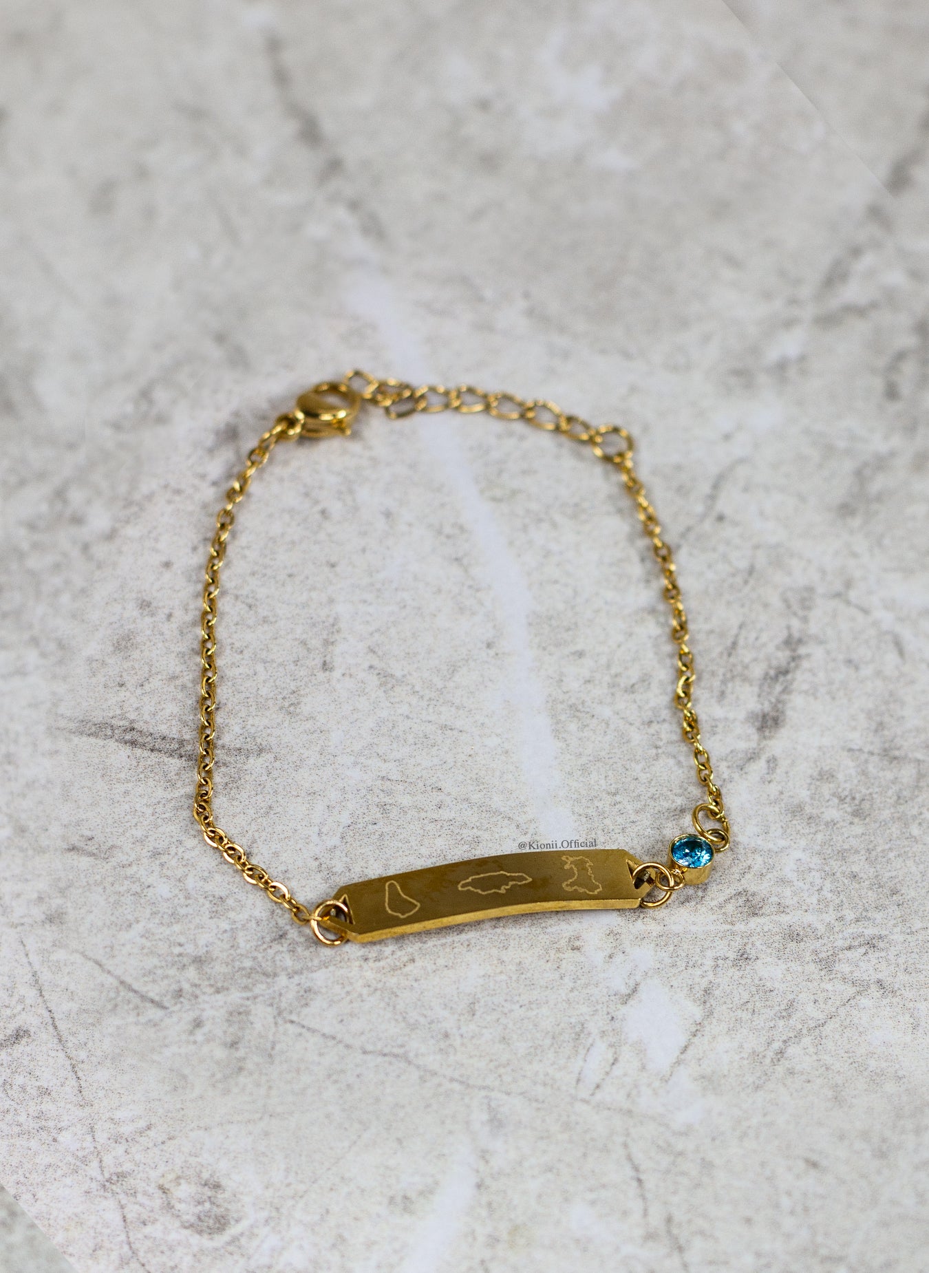 Crafted from durable gold-plated stainless steel, this bracelet is fully customisable. Personalise the front with up to three heritage countries, beautifully representing their unique background. You can also engrave the back with their name or date of birth, making it a truly special and sentimental piece.