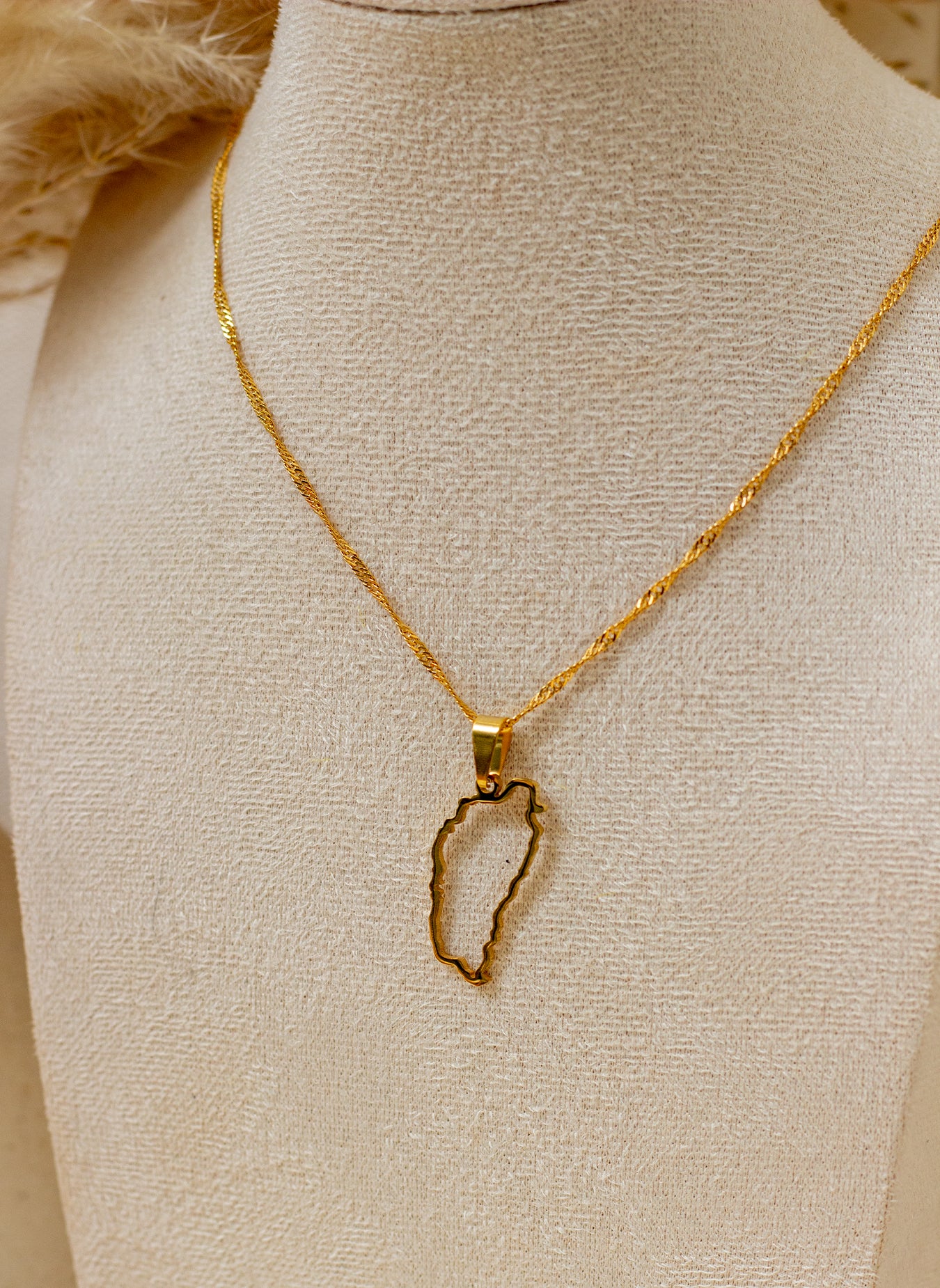 Celebrate the beauty and pride of the Nature Isle with the Dominica Outline Necklace - a radiant symbol of home, heritage, and strength. Crafted in premium gold plating, this pendant features the elegant outline of Dominica, representing resilience, unity, and the island’s vibrant spirit.