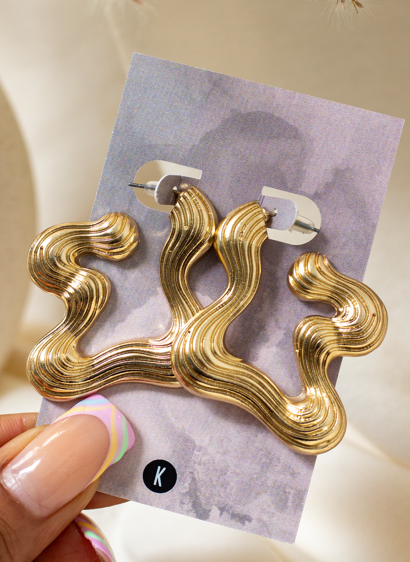 Their high-shine gold finish catches the light beautifully, adding a touch of luxury to any look - from minimal daytime outfits to glamorous evening wear. Lightweight yet impactful, the Luna Wave Earrings are made for the woman who isn’t afraid to stand out.