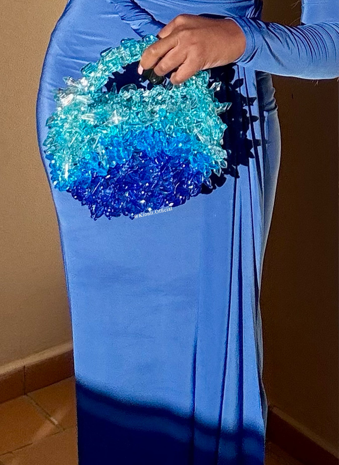 👐 Handcrafted Luxe: Each sky-blue crystal bead and spike is carefully applied by hand, creating a unique, high-end finish.