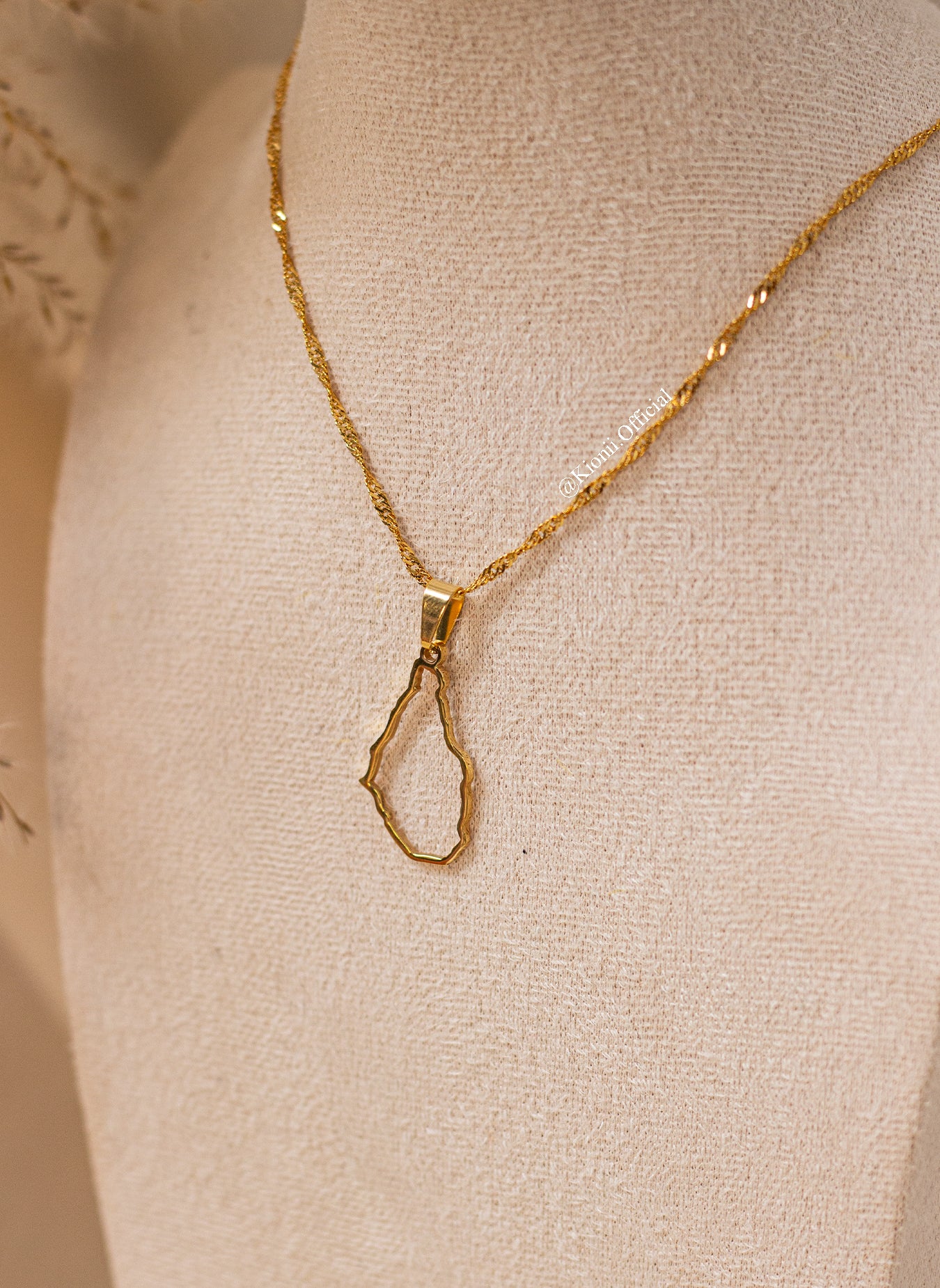 Carry the beauty and pride of the island wherever you go with the Saint Lucia Outline Necklace - a radiant symbol of heritage, strength, and home. Crafted in luxurious gold plating 💛, this elegant pendant captures the iconic shape of Saint Lucia, known for its breathtaking Pitons and Caribbean charm.